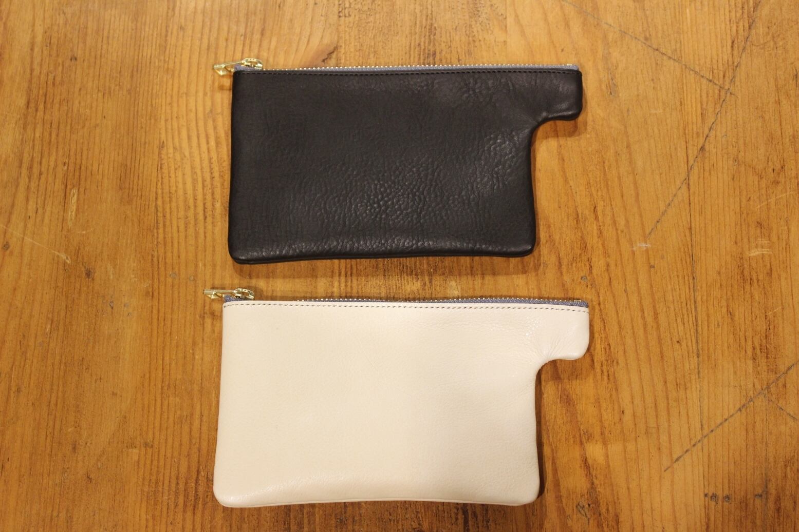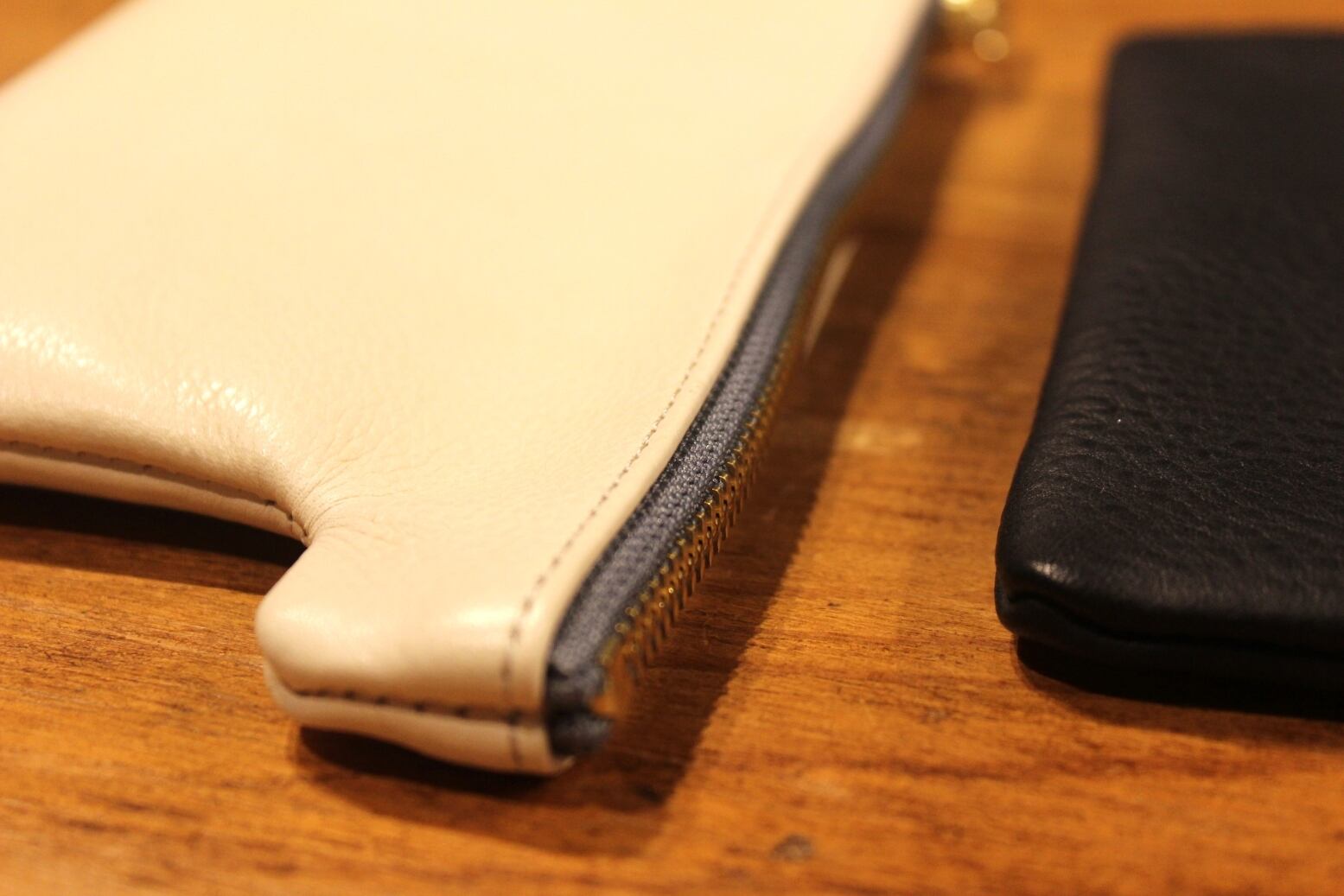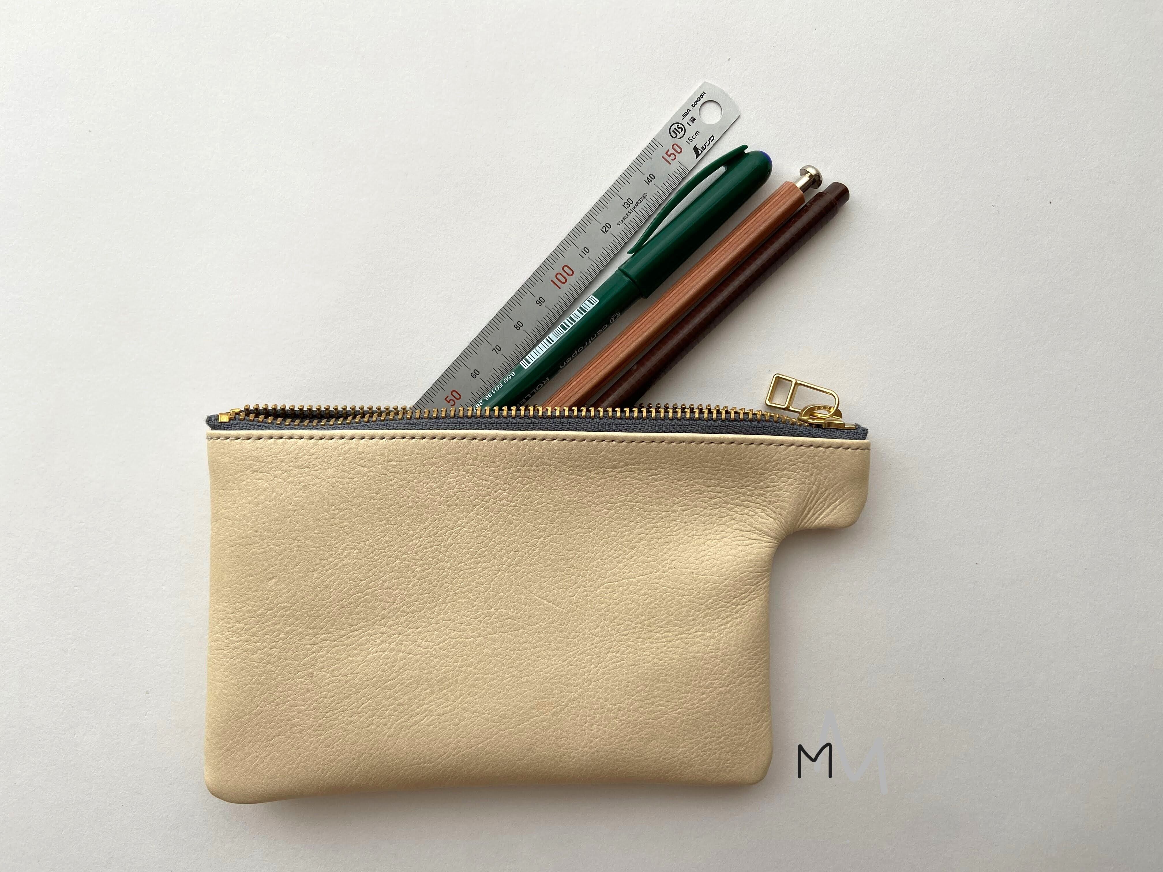 シンプルなポーチ。ファスナーの開きをよくするためのアイディアを入れたデザイン。