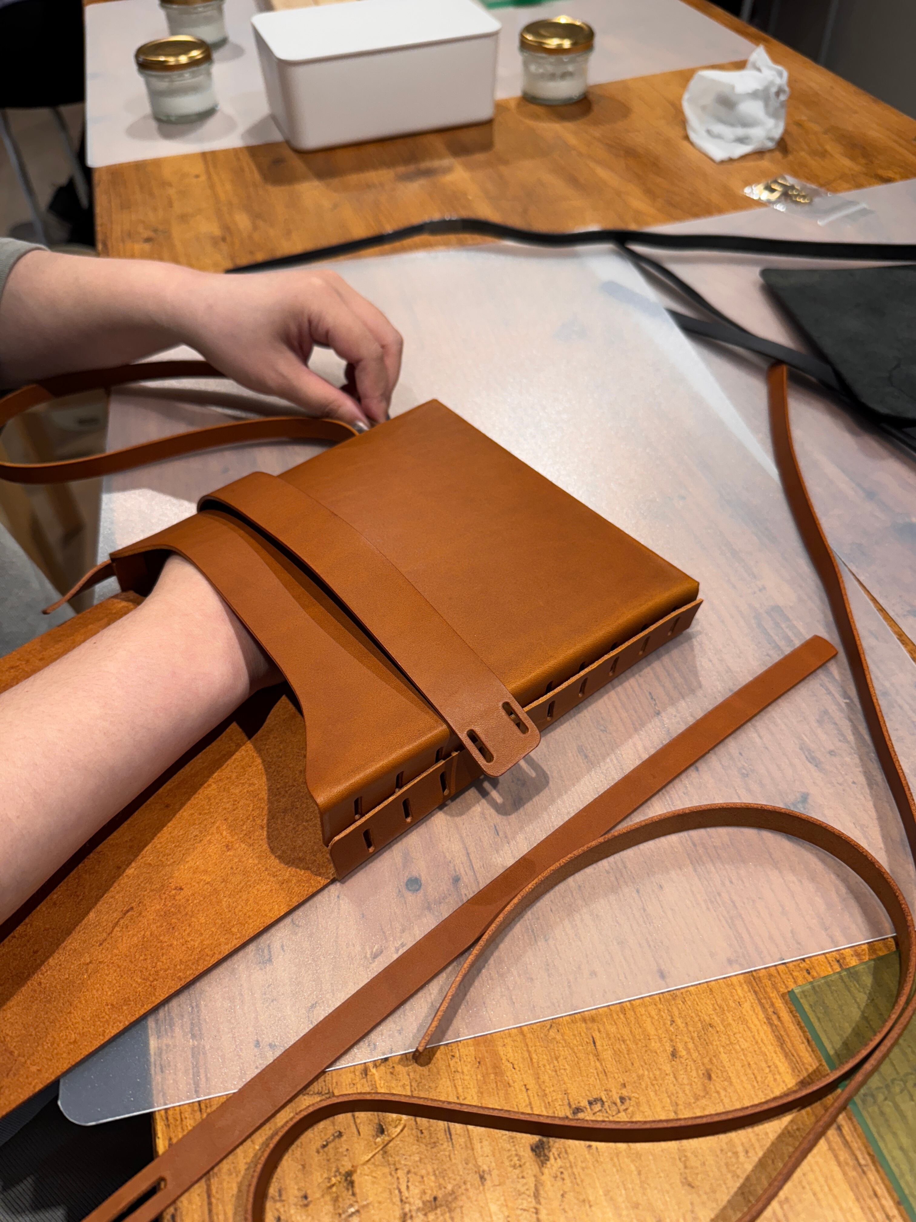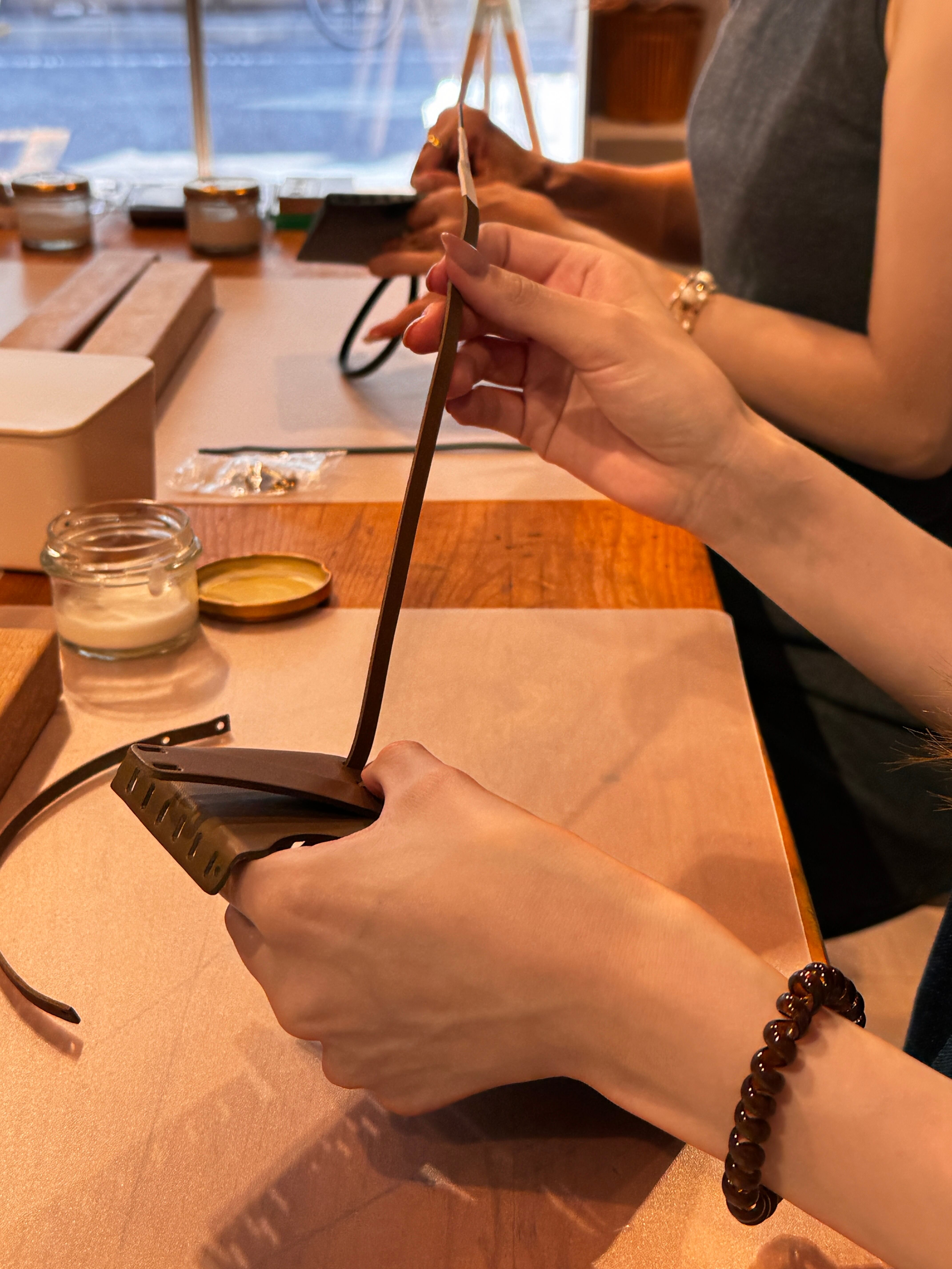 自ら手を動かし、笑い合いながら完成させた革小物は
